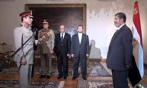 | عبد الفتاح السيسي يؤدي اليمين الدستوري وزيرا للدفاع أمام الرئيس محمد مرسي (القاهرة 12-8-2012) |
