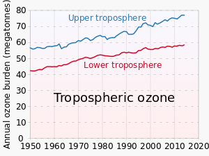 - ^ Yu, Xinyuan; Fiore, Arlene M.; Santer, Benjamin D.; Correa, Gustavo P.; et al. (2 August 2024). "Anthropogenic Fingerprint Detectable in Upper Tropospheric Ozone Trends Retrieved from Satellite". Environmental Science and Technology. 58 (32): 14306–14317. Bibcode:2024EnST...5814306Y. doi:10.1021/acs.est.4c01289. PMC 11325641. PMID 39092829.