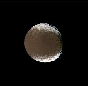 8. ^ الأقمار ذات الكتلة الأكبر من اياپتوس هي: قمر الأرض 4 أقمار گليليان, تيتان، ريا، تيتانيا، اوبرون وتريتون. انظر JPLSSD.