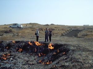 هذه النار الطبيعية كانت المؤشر لجيولوجيين القرن الماضي للاستدلال على وجود النفط والغاز بالمنطقة. وهي نار دائمة الاشتعال بسبب تسرب الغاز من الحقل النفطي في منطقة بابا كركر لوجود تكسرات في القشرة الأرضية في منطقة الدوم النفطي. والمنطقة على العموم عابقة بغاز كبريتيد الهيدروجين وعند زيارتها يجب مراعاة طريقة الوقوف مع اتجاه الريح السائدة تجنبا لاستنشاق الغاز السام.