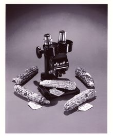 مجهر مكلنتوك وكيزان الذرة معروضون في المتحف الوطني للتاريخ الطبيعي