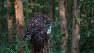 Although favouring forests, goshawks may be found in other areas. An example of goshawks occurring as urban wildlife can be found in Japan, where a population of the species lives and breeds in the Imperial Palace gardens in Tokyo, alongside a number of other species of birds of prey and owls; it is believed that the birds have managed to thrive in the dense urban environment due to tree-planting initiatives and control measures being imposed against urban crows.[34] Goshawks were first recorded breeding in this location in 2001, when a nest was found in an evergreen oak (Quercus acuta) tree.[35]