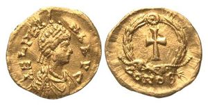 Tremissis issued in the name of Aelia Verina, wife and later widow of Emperor Leo I. As sister of Basiliscus, Verina helped him in both his military and political career — even if unwillingly supporting his bid for the purple.