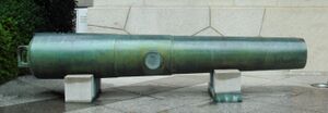 One of the cannons of Odaiba, now at the Yasukuni Shrine. 80-pound bronze; Bore: 250mm, length: 3830mm.