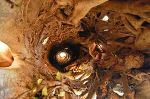 In a banyan that envelops its host tree, the mesh of roots growing around the latter eventually applies considerable pressure to and commonly kills it. Such an enveloped, dead tree eventually decomposes, so that the banyan becomes a "columnar tree" with a hollow, central core. In jungles, such hollows are very desirable shelters to many animals.[بحاجة لمصدر]