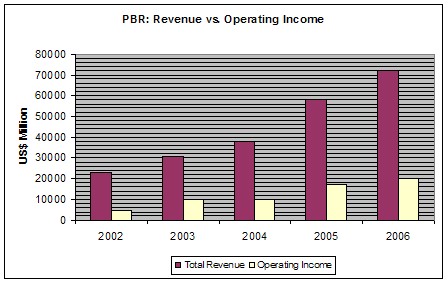وفي 2005 وصل ربح الشركة إلى 23,7 مليار (ريال برازيلي) بزيادة 40% بالمقارنة في 2004 ويعتبر أكبر ربح للشركة منذ تأسيسها وفي 2006 بدأت پتروبراس بزيادت إنتاجها وأخذت تزدات الارباح، وكان من أسباب نجاح الشركة في السنوات الأخيرة إنتاج الزيوت الثقيلة والتكرير، وتعتبر بتروبراس واحدة من أعمدة الاقتصاد البرازيلي وتلعب دورا في داخل وخارج البرازيل.