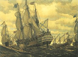 Eugene Lanceray. Fleet of Peter the Great (1709).