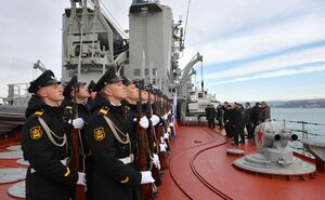 Russian Navy sailors onboard the cruiser Marshal Ustinov in a joint exercise of the Northern and Black Sea fleets