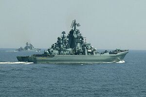 The nuclear-powered missile cruiser Peter the Great during a naval exercise