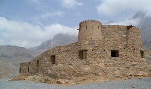 • Al-Bilad Fort: One of the most notable historical structures, it is situated in the midst of the Wilayat and directly faces the beach in the Musandam Governorate's Bukha Wilayat. Sheikh Suleiman bin Muhammad Al Malik Al-Shehhi constructed this fort around 1250 AD, during the rule of Imam Saif bin Sultan Al-Ya'rubi. This fort is recognized by its tower, which is situated in the southwest corner of the fort. In 1989 A.D, it was renovated and made accessible to visitors so they may admire the exquisite architectural design.[6]