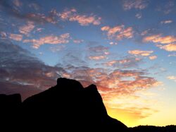 Pedra da Gávea is a monolithic mountain in Tijuca Forest, Rio de Janeiro, Brazil. Composed of granite and gneiss, its elevation is 844 متر (2،769 ft), making it one of the highest mountains in the world that ends directly in the ocean.[2] Trails on the mountain were opened up by the local farming population in the early 19th century; today, the site is under the administration of the Tijuca National Park.[3]