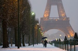 تساقط الثلوج على برج إيفل في شتاء 2010.