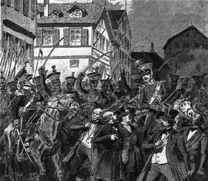 Apart from this nationalist component, calls for civic rights influenced political discourse. The Napoleonic Code Civil had led to the introduction of civic rights in some German states in the early 19th century. Furthermore, some German states had adopted constitutions after the foundation of the German Confederacy. Between 1819 and 1830, the Carlsbad Decrees and other instances of Restoration politics limited such developments. The unrest that resulted from the 1830 French July Revolution led to a temporary reversal of that trend, but after the demonstration for civic rights and national unity at the 1832 Hambach Festival, and the abortive attempt at an armed rising in the 1833 Frankfurter Wachensturm, the pressure on representatives of constitutional or democratic ideas was raised through measures such as censorship and bans on public assemblies.