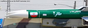 قائم: تم الكشف عنه مع الكشف عن الصاروخ طوفان 5، الصاروخ قائم هو في أساسه نوع من صواريخ طوفان تُستَخدَم ضد طائرات الهليكوبتر (المروحيات). ان صاروخ قائم لدية نظام للتوجيه بالليزر مقاوم للتشويش من قبل العدو.[130]