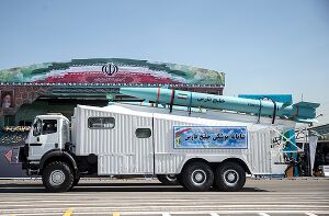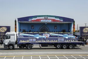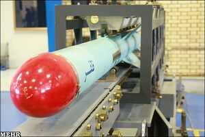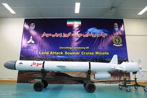 سومار:[371][372][373][374] هو صاروخ بري جوال[11][12][13] بعيد المدى قادر على حمل رؤوس نووية.[375][376][377] يعمل بالوقود الصلب، والذي يمثل بدايةً ناجحة للصواريخ الإيرانية الجوالة، ويُعَد من أهم وأخطر ما توصل إليه الخبراء الإيرانيون في هذا المضمار،[378] خاصةً أنه صاروخ بعيد المدى ويتراوح مداه من (2500-3000) كيلومتر، وهو أحد أجيال الصواريخ الباليستية کروز. وهو أشبه بصاروخ (خا – 55) السوفيتي فإنه قد يتمكن من استهداف مرماه ليس فقط في منطقة الشرق الأوسط فحسب، بل أيضاً في جنوبي وشرقي أوروبا،[379][380] ويُعتبَر سومار جيل جديد من الصواريخ الباليستية كروز الإيرانية، ومُصّنَع بخبرات متخصصين في مؤسسة الصناعات الدفاعية الإيرانية.[381][382][383] أُزيحَ الستار عن هذا الصاروخ في 9 مارس 2015م بواسطة العميد حسين دهقان وزير الدفاع الإيراني. وقد اختبرته جمهورية إيران بنجاح عام 2017م،[384] بحسب ما نقلت صحيفة «دي فيلت» الألمانية يوم 2 فبراير/شباط 2017م عن مصادر مخابراتية لم تسمها. وصاروخ «سومار» جرى تصنيعه في إيران وحلق لنحو 600 كيلومتر في أول اختبار ناجح مُعلَن لإطلاقه. ونقلت الصحيفة عن مصادر مخابراتية قولها إن الصاروخ قادر على حمل أسلحة نووية ويمكن أن يتراوح مداه بين 2000 و3000 كيلومتر. يُذكَذ أن إمكانية صد صواريخ كروز أصعب مقارنةً بالصواريخ الباليستية، حيث إنها تُحّلِق على مستويات منخفضة ربما لا تلتقطها أنظمة الرادار مما يُربِك أنظمة الدفاع الصاروخية، كما أن بإمكان كروز ضرب أهداف في عمق أراضي الخصم.[385][386][387][388] ويمتلك صاروخ سومار إمكانات متميزة عن بقية الصّواريخ خصوصاً فيما يتعلّق بأنظمة التّحكّم، هيكل الصّاروخ وأنظمة الدّفع (أو الإطلاق).[389][390][391][392][393] وتجدر الإشارة هنا، إلى أن وزارة الدفاع الإيرانية أطلقت على هذا الصاروخ اسم سومار استشهاداً بمنطقة عمليات عسكرية شهيرة إبان حرب الخليج الأولى.[394][395]