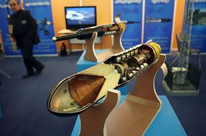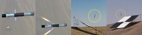 صاعقة: هو صاروخ إيراني يأتي بنسختين صاعقة 1 و2 ويُعتبَر صاروخ صاعقة من ضمن الصواريخ الإيرانية المضادة للدروع والذي يتميز بقدرة اختراق الدروع بسماكة 500 ملم وإصابة الأهداف الثابتة على بعد 1000 متر.[575] ان صاروخ صاعقة هو صاروخ قصير المدى مضاد للدروع يزن 14.5 كلغ ويمكن حمله بسهولة من قبل شخص واحد. ويمكن توجيه هذا الصاروخ سلكياً، ونظراً للدقة العالية في نظام التتبع يمكنه استهداف جميع الأهداف المتحركة والثابتة وبدقة 90 بالمئة. وأفادت وكالة تسنيم الدولية للأنباء بأن الخبراء الإيرانيين نجحوا حتى اليوم بتصميم وإنتاج أنواع من الصواريخ الموجهة المضادة للدروع. وصاروخ صاعقة هو أحد تلك الصواريخ.[576]