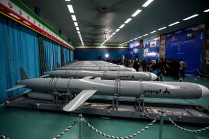 رضوان الباليستي: إنگليزية: Rezvan هو صاروخ باليستي أرض - أرض متوسط المدى إيراني الصنع ذو مرحلة واحدة يعمل بالوقود السائل، وله رأس حربي قابل للفصل وبمدى عملياتي يبلغ 1400 كيلومتر (870 ميل). وقد أعلنت جمهورية إيران عن هذا الصاروخ الباليستي الجديد في 22 أيلول/ سبتمبر 2022م.[453] حيث كشفت القوات الجوية في الحرس الثوري الإيراني، للمرة الأولى عن صاروخ (رضوان) الباليستي الذي يعمل بالوقود السائل خلال العرض العسكري الذي أقيم بمناسبة أسبوع الدفاع المقدس (ذكرى الحرب العراقية الإيرانية) بالعاصمة الإيرانية طهران، بالإضافة إلى صاروخ (خيبر شكن) والذي يعني بالعربية (كاسر خيبر).[64][454][455][456][457][458][459][460][461][462][463][464][465][466][467][468][469][470][471][472][473][474][475][476] إن هذا الصاروخ يصنف ضمن الصواريخ الإستراتيجية التي تمتلكها طهران، ويستطيع دخول الغلاف الجوي للأرض بسرعة ثمانية أضعاف سرعة الصوت.[477][478][479][480] وتم تصميم هذا النظام الصاروخي الإيراني بالكامل من الفكرة إلى الإنتاج من قبل العلماء في القوات الجوية التابعة للحرس الثوري الإيراني.[481][482][483][484][485][486] ومن الميزات التي يتمتع بها صاروخ رضوان الباليستي هو أنه صاروخ نقطوي، وهو مصنف كواحد من الصواريخ الإيرانية متوسطة المدى.[63] بالإضافة إلى إنه بالإمكان إطلاقه من مجموعة متنوعة من المنصات الثابتة والمتحركة. ونقلت وكالة أنباء الجمهورية الإسلامية الإيرانية عن قائد الحرس الثوري الإيراني اللواء حسين سلامي قوله "إنه صاروخ باليستي دقيق".[64][65][71][487][488][489][490][491][492][493][494]