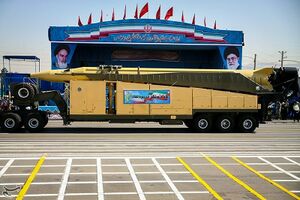 خرمشهر: هو صاروخ باليستي إيراني أرض-أرض جيل جديد من الصواريخ الباليستية الإيرانية التي تم تصنيعها محلياً سنة 2017م عبر مصانع وزارة الدفاع وإسناد القوات المسلحة ووفق تصاميم إيرانية خاصة. ويُعتبَر من ضمن الصواريخ الإيرانية بدون جُنَيحات، ولهذا الصاروخ القدرة على التحليق لمسافة 2000 كيلومتر وبقدرة حمل عدد من الرؤوس الحربية. بدلاً من رأس واحد.[44][45][46] وأعلنت طهران كذلك أن وزن الرأس الحربي المثبت على الصاروخ خرمشهر هو 1800 كيلوغرام، ليصبح بذلك أحد أقوى صواريخ إيران من أجل الدفاع والرد على أي عدو. وقال قائد القوة الجو-فضائية بحرس الثورة إن هذا الصاروخ يُعَد إنجازاً جديداً، حيث قامت وزارة الدفاع بصناعته لحرس الثورة الإسلامية. ونقلت هيئة الإذاعة والتلفزيون تغطية لتجربة إطلاق الصاروخ، دون تحديد الموعد الذي أجريت به أو المكان الذي جرت فيه بما في ذلك تسجيل فيديو من كاميرا مثبتة على الصاروخ قالت إنه يصور انفصال المخروط الذي يحمل عدة رؤوس حربية. وقال التلفزيون "نرى لقطات للتجربة الناجحة للصاروخ البالستي خرمشهر الذي يصل مداه إلى ألفي كيلومتر، وهو أحدث صاروخ لبلادنا.[47] ومن مواصفات صاروخ خرمشهر هو ان مداه يبلغ 2000 كيلومتر، وهو صاروخ "أرض-أرض" بطول 13 متر وقطره 1.5 متر ويزن نحو 20 طناً ويُستَخدَم فيه الوقود السائل. ويُعتبَر من أحدث الصواريخ الباليستية الإيرانية، وكان النموذج الأولي لصاروخ خرمشهر برأس حربي يبلغ وزنه 1800 كيلوغرام وبإمكانه حمل عدة رؤوس باليستية بدلاً من واحد. يشار إلى أن عدة صواريخ إيرانية زوّدت بهذا النوع من الرؤوس الحربية.[48] وقالت وسائل إعلام رسمية إيرانية سنة 2019م إن إيران قامت بتجهيز صواريخها الأكثر تطوراً والأبعد مدى، القادرة على ضرب إسرائيل وقواعد أمريكية في الخليج العربي، برؤوس حربية موجهة دقيقة جديدة. وبحسب تقرير لم يُذكَر مصدره في وكالة فارس للأنباء، فلقد تم وضع الرؤوس الحربية الموجهة الجديدة المصنعة محلياً على خرمشهر، وأفاد التقرير: أُطلَق على الجيل الجديد من الصواريخ المجهزة برؤوس حربية موجهة اسم خرمشهر- 2 ويمكن التحكم بها حتى تصيب الهدف وهي قادرة على حمل رؤوس حربية يصل وزنها إلى حوالي 2 طن. وأضاف التقرير أن الرؤوس الحربية الجديدة تم تركيبها في السابق على صواريخ عماد وقدر وقيام ذات المدى الأقصر.[49] وقد أثار إعلان إيران عن صاروخ خرمشهر ردود أفعال قلقة من دول غربية عديدة، فقد قال الرئيس الأميركي دونالد ترامب في تغريدة على تويتر ان إيران اختبرت لتوها صاروخاً بالستياً قادراً على الوصول إلى إسرائيل، هم يعملون أيضاً مع كوريا الشمالية. كما وأبدت بريطانيا قلقها إزاء أحدث تجربة صاروخية. وكتب وزير الخارجية بوريس جونسون على تويتر "نشعر بقلق بالغ إزاء تقارير بإجراء إيران تجربة صاروخية وهو ما يتنافى مع قرار الأمم المتحدة رقم 2231. ندعو إيران إلى التوقف عن التصرفات الاستفزازية". كما قالت فرنسا إنها قلقة للغاية من تجربة الصاروخ البالستي التي أجرتها إيران، ودعت الأمين العام للأمم المتحدة أنطونيو غوتيريش إلى تقديم تقرير شامل عن عملية الإطلاق.[47]