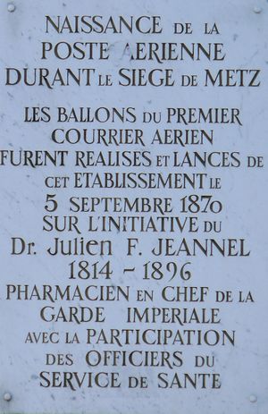 Plate commemorating the launching site of the first airmail carrier in Metz, فرنسا.