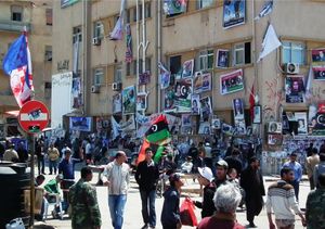 As of 21 February, the city was reported to be largely controlled by the opposition. The widely loathed mayor, Huda Ben Amer, nicknamed "the Executioner", fled the city for Tripoli.[16] Residents organised to direct traffic and collect refuse.[8] By 24 February, a committee made up of lawyers, judges and respected local people had been formed in order to provide civic administration and public services within the city. Two local radio stations, operated by Voice of Free Libya, along with a newspaper, were also established.[8][17]
