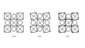 The notation consists of a letter a/b/c, which describes the rotation around a Cartesian axis and a superscript +/—/0 to denote the rotation with respect to the adjacent layer. A “+” denotes that the rotation of two adjacent layers points in the same direction, whereas a “—” denotes that adjacent layers are rotated in opposite directions. Common examples are a0a0a0, a0a0a and a0a0a+ which are visualized here.