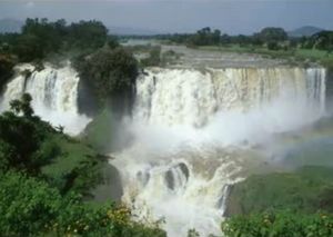يسمونه «تنش أبآي» وهو بالفعل نهر صغير، لكنه يحمل خير الصبايا عندما يتثنى بين خضرة وتلال، بعد مخاض من بحيرة تانا، أعلى بحيرات أفريقيا، ثم يتسارع ليبدأ هديرا يصم الآذان لحظات انهماره شلالا يفوق الوصف، يتدلى وينسكب بصخب الحياة وفتوة الاندفاع، رذاذه يحاكي بياض أسنان إثيوپية تروي بابتسامتها ظمأ الأرض العاشقة.[1]