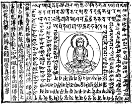 كتاب مفتوح على نسخة صينية من سوترا أميتابها مع شرح ياباني.
