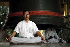 A Burmese man meditates in Myanmar. The widespread practice of meditation by laypersons is a modern development in Theravāda.