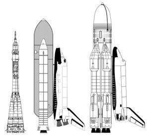 Unlike the US Space Shuttle, which was propelled by a combination of solid boosters and the shuttle orbiter's own liquid-fuel engines fueled from a large fuel tank, the Soviet/Russian shuttle system used thrust from the rocket's four RD-170 liquid oxygen/kerosene engines developed by Valentin Glushko and another four RD-0120 liquid oxygen/liquid hydrogen engines.[2]
