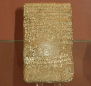 Perhaps to cement relations, Muballiṭat-Šērūa, daughter of Aššur-uballiṭ, had been married to either Burna-Buriaš[17] or possibly his son,[18] Kara-ḫardaš; the historical sources do not agree.[19] The scenario proposed by Brinkman[20] has come to be considered the orthodox interpretation of these events. A poorly preserved letter in the Pergamon Museum possibly mentions him and a princess or mārat šarri.[i 13] Kara-ḫardaš was murdered, shortly after succeeding his father to the throne, during a rebellion by the Kassite army in 1333 BC.