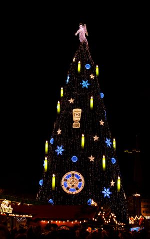 شجرة الكريسماس في سوق دورتموند مزينة بكأس ألمانيا ودرع الدوري الألماني