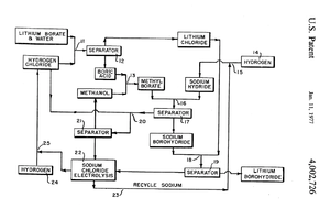 - ^ US Patent 4002726 (1977) lithium borohydride recycling from lithium borate via a methyl borate intermediate