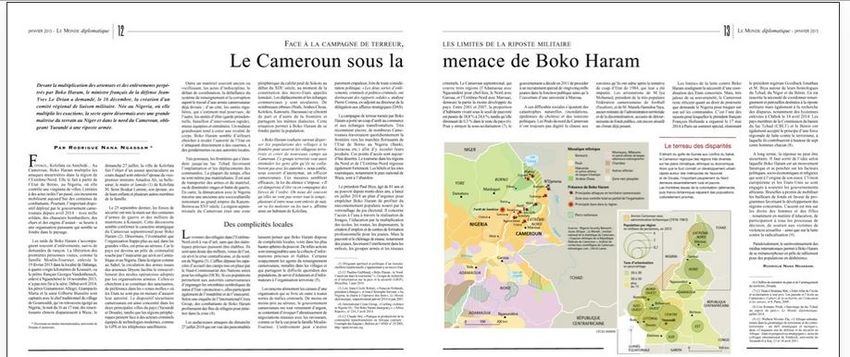- ^ Rodrigue Nana Ngassam (2015-01-01). "Le Cameroun sous la menace de Boko Haram". لوموند دپلوماتيك. pp. 12–13.
