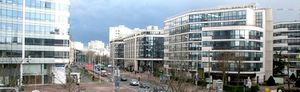 Boulogne-Billancourt is the most populous suburb of Paris and one of the most densely populated municipalities in Europe.[بحاجة لمصدر] Formerly an important industrial site, it has successfully reconverted into business services and is now home to major communication companies headquartered in the Val de Seine business district.