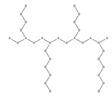 - بوليمير إسهامي دوري (Periodic copolymers): الوحدات A وB مرتبة بتسلسل دوري، أي (A-B-A-B-B-A-A-A-A-B-B-B)n