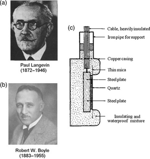 عمل لانگفان إبان الحرب العالمية الأولى (1914- 1918) على تطوير طريقة لكشف الغواصات الألمانية عن طريق الصدى. تستخدم هذه الطريقة، والتي تدعى اليوم سونار، أمواجاً لا تحس بها الأذن، إذ إن تواترها يزيد على 20 كيلو هرتز، تصدر عن قارب أو غواصة، ولدى ارتدادها عن الأجسام الغاطسة في الماء وتحليل الموجة المنعكسة يمكن الحصول على معلومات حول حجم الجسم الغاطس وشكله وعلى أي بعد هو. وقد تمكَّن قبيل الحرب العالمية الثانية (1939- 1945)، من اكتشاف طريقة لتهدئة النترونات، وأفاد الفيزيائيون لاحقاً منها في تطوير المفاعلات النووية.