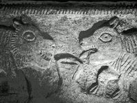 Aside from an extensive body of inscriptions in several languages, the walls and tombs have many images, engraved and carved in relief, ranging from Jewish symbols and geometric decoration to animals and figures from Hellenistic myth and religion.[26]