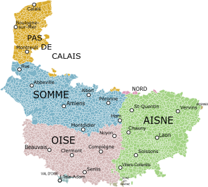 From the 5th century, the area formed part of the Frankish Empire and, in the feudal period, it encompassed the six countships of Boulogne, Montreuil, Ponthieu, Amiénois, Vermandois and Laonnois.[4] In accordance with the provisions of the 843 Treaty of Verdun, the region became part of West Francia, the later Kingdom of France.