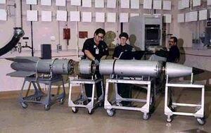 13 | في الخدمة | وحدة الإنتاج الأول 5/25[30] | "بضعة عشرات" | تكتيكية/إستراتيجية | يُزعم أن هناك 4 إعدادات للقدرة، بما في ذلك 10 أو 340 ك.ط. | تحويل من التعديل 7، سلاح خارق للأرض.[7] |
