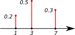 دالة الثقل الاحتمالي هي التوزيع الاحتمالي لمتغير عشوائي متقطع، وتعطي القيم الممكنة والاحتمالات المقترنة بها. وهي الدالة defined by