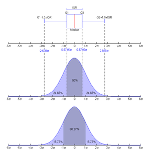 - بالنسبة للتوزيع الاحتمالي الطبيعي أو الغاوسي، فإنّ دالة الكثافة الاحتمالية هي: