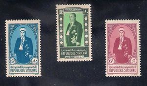 ملاحظة: في الصورة المجموعة الكاملة للطوابع الصادرة في عام 1942 خلال تولي الشيخ تاج الدين الحسني منصب رئيس للجمهورية