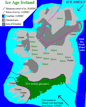- ^ Edwards, R.J., Brooks, A.J. (2008) The Island of Ireland: Drowning the Myth of an Irish Land-bridge? In: Davenport, J.J., Sleeman, D.P., Woodman, P.C. (eds.) Mind the Gap: Postglacial Colonisation of Ireland. Special Supplement to The Irish Naturalists' Journal. pp. 19ff.