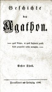 تاريخ أگاثون Geschichte des Agathon هي رواية من جزئين نُشرا في 1766 و 1767 من تأليف كريستوف مارتن ڤيلاند بالألمانية. وقد أراد فيلاند (البالغ ثلاثة وثلاثين عاماً) في صفحاتها المطوفة أن يبسط فلسفته في الحياة، متمثلة في المغامرات الجسدية والعقلية لرجل أثيني من عصر پركليس. وهو أهم عمل نثري ألفه، الذي وصفه ليسنگ بأنه "الرواية الوحيدة اللائقة بالرجال المفكرين"(6).