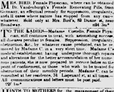 وكمثال شهير على سيدات عملن بمجال الإجهاض نجد السيدة ريستيل أو آن لوهمان وهي سيدة عملت بإجهاض الحوامل على مدار 40 عام مستخدمة في ذلك الجراحة والعقاقير. وقد بدأت علمها في نيويورك عام 1830 وتوسع عملها ليصل إلى بوسطن وفيلاديلفيا عام 1840 وبحلول عام 1870 وصلت تكلفة الإعلانات الخاصة بالسيدة ريستيل وحدها حوالي 60.000 دولار أمريكي سنويًا [4] وأصبح اسم السيدة ريستيل مرادفًا لمعنى الإجهاض[72].وبعد وفاة السيدة ريستل وجد أن مجموع ثروتها من العمل كمجهضة يصل إلى 500.000-600.000 دولار أمريكي ($12 million-$14.4 million بتقدير العصر الحديث [73])