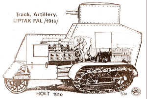 The first working tracked passenger war vehicle, the first modern tank was made in Hungary by inventor Pál Lipták in 1913, as a specialization of the war tractors of the era. It had a built-in, rotating turret for its cannon and a flamethrower was also added at one point. The first test firings were held in 1915, but the military scrapped the idea, worried that the rivets would not withstand a major hit.[16][17]