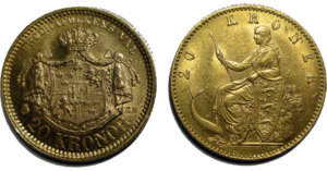 The Scandinavian Monetary Union, a monetary union formed by Sweden and Denmark on 5 May 1873, fixed both their currencies against gold at par to each other. Norway, governed in union with Sweden, entered the monetary union two years later in 1875 by pegging its currency to gold at the same level as Denmark and Sweden (.403 gram).[19] The monetary union proved one of the few tangible results of the Scandinavist political movement of the 19th century.