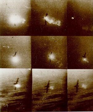 Others, such as General Billy Mitchell in the United States, saw the potential of air power to augment the striking power of naval surface fleets.[43] German and British pilots had experimented with aerial bombing of ships and air-dropped torpedoes during World War I with mixed results. The vulnerability of capital ships to aircraft was demonstrated on 21 July 1921 when a squadron of bombers commanded by General Mitchell sank the ex-German battleship SMS Ostfriesland with aerial bombs; although the Ostfriesland was stationary and defenseless during the exercise, its destruction demonstrated the potency of air planes against ships.[43][44]