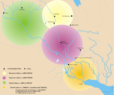 The Samarra culture is a Chalcolithic archaeological culture in northern Mesopotamia that is roughly dated to 5500–4800 BCE. It partially overlaps with the Hassuna and early Ubaid.