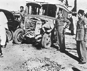 بعد انتهاء الحرب العالمية الثانية عام 1945 ، تصاعدت حدّة هجمات الجماعات الصهيونية على القوات البريطانية في فلسطين ، مما حدا ببريطانيا إلى احالة المشكلة الفلسطينية إلى الامم المتحدة ، وفي 28 ابريل بدأت جلسة الجمعية العامة التابعة للأمم المتحدة بخصوص قضية فلسطين ، واختتمت اعمال الجلسات في 15 مايو بقرار تأليف لجنة الامم المتحدة الخاصة بفلسطين (UNSCOP) ، وهي لجنة مؤلفة من 11 عضوا ، نشرت هذه اللجنة تقريرها في 8 سبتمبر الذي أيد معظم افرادها حل التقسيم ، بينما اوصى الاعضاء الباقون بحل فيدرالي ، فرفضت الهيئة العربية العليا اقتراح التقسيم اما الوكالة اليهودية فاعلنت قبولها بالتقسيم ، ووافق كل من الولايات الامريكية المتحدة والاتحاد السوفييتي على التقسيم على التوالي ، واعلنت الحكومة البريطانية في 29 اكتوبر عن عزمها على مغادرة فلسطين في غضون ستة اشهر اذا لم يتم التوصل إلى حل يقبله العرب والصهيونيون (انظر تقسيم فلسطين).
